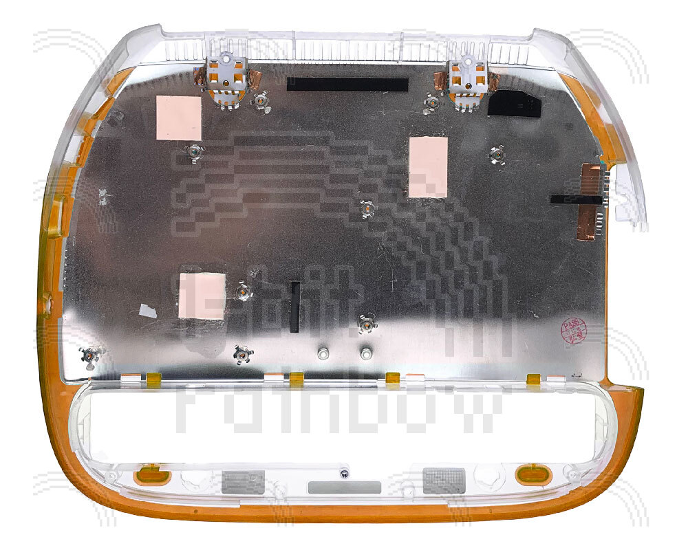 Original Apple Tangerine bottom case and shield for the Original iBook G3 Clamshell.
