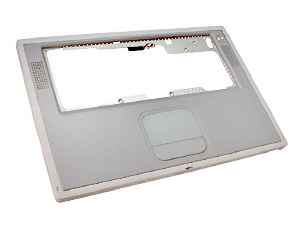 Complete top case for 400MHz & 500MHz models of Titanium PowerBook G4. This unit icludes the power button, speakers, trackpad, trackpad button, trackpad flex cable, AirPort antenna and PMU board.