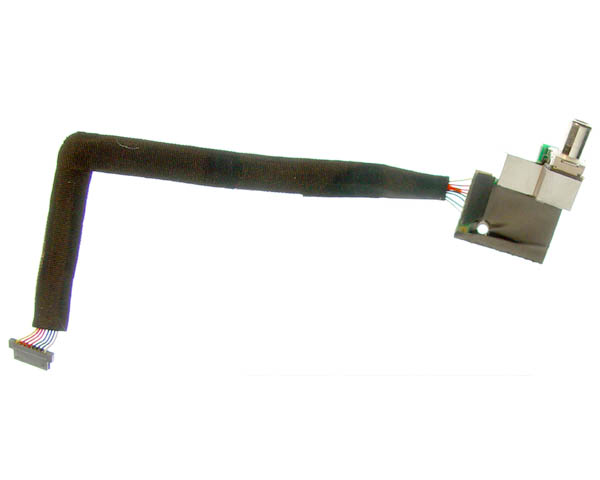 DC-in board for all models of 12" Aluminium PowerBook G4 (867MHz, 1GHz, 1.33GHz & 1.5GHz). This board contains the DC socket where the power adapter plugs into the PowerBook. It has an integral cable that connects to the logic board.