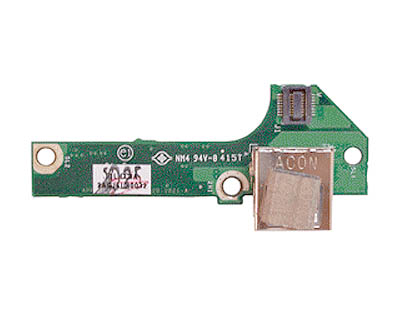 Right hand USB board for the A1138 dual layer superdrive 1.67GHz (1440x960 screen) model of the 15" Aluminium PowerBook G4. This part will not fit the single layer Superdrive (A1106 - 1280x854 screen) version of the 1.67GHz PowerBook. This board connects to the logic board via the right usb flex cable.