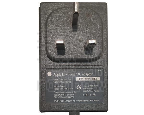 Original Apple, fully tested 15W, 2A Apple UK charger for the original PowerBook 100 series of laptops. Original Apple, fully tested suitable for all 100 serial PowerBooks except the 180c and 165c which require a 24W charger.