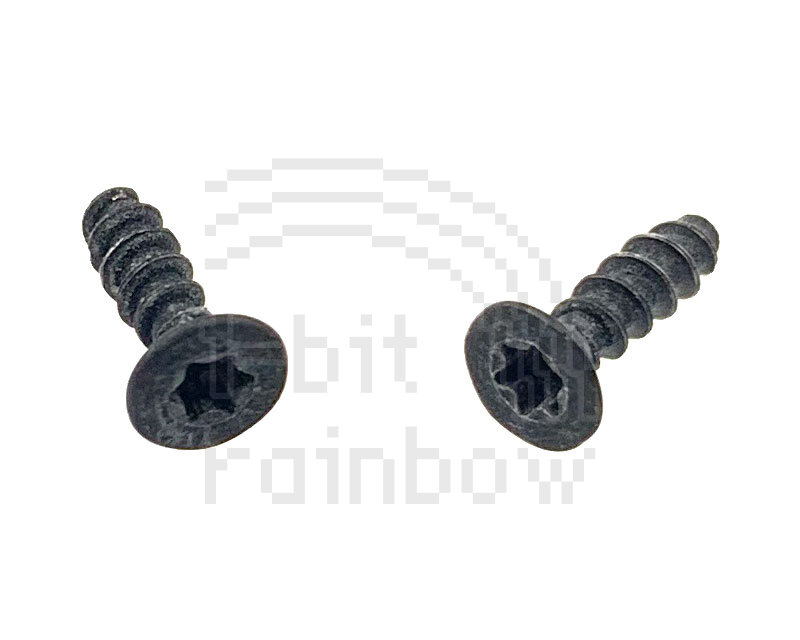 2 x T8 countersunk head grey 8.1mm self tapping screws for securing the centre base cover of the PowerBook 500 series range. These are located on the rear of the laptop inside the port door.