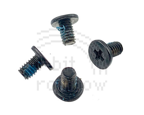 4 x original Apple 4.4mm black crosshead casing screws for the Powerbook 1400 series. There are 6 inside the expansion bays, 2 on the back of the laptop under stickers, and 2 on the display bezel under stickers.