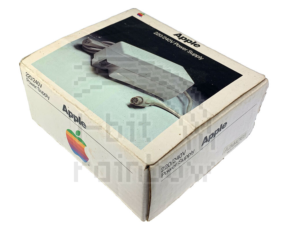New, retail boxed, original Apple 220/240V external power supply for the Apple IIc including UK mains cable. This is not suitable for the Apple IIc plus.