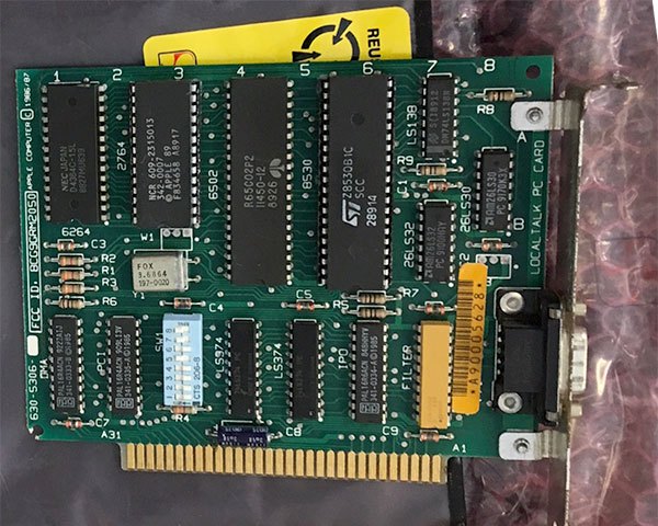 Original boxes Apple LocalTalk PC Card with manual. This card can be fitted to an early IBM PC or compatible computer to allow it to link to a LocalTalk network. There are some marks on the box but generally in OK condition. The card is pristine other than some very slight tarnishing on the rear plate.